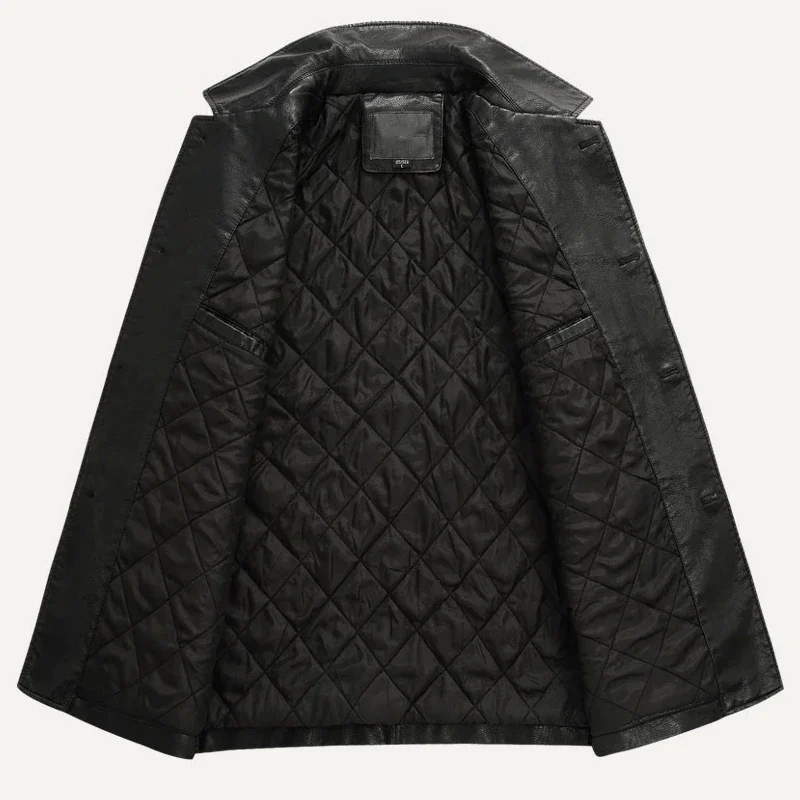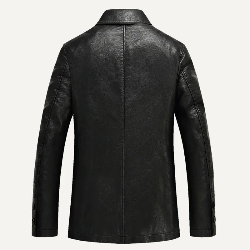 Business Leather Jacket Men Thick Warm Liner Windbreaker Mens PU Leather Jacket Father’s Gift Jaqueta Masculinas Plus Size M-4XL