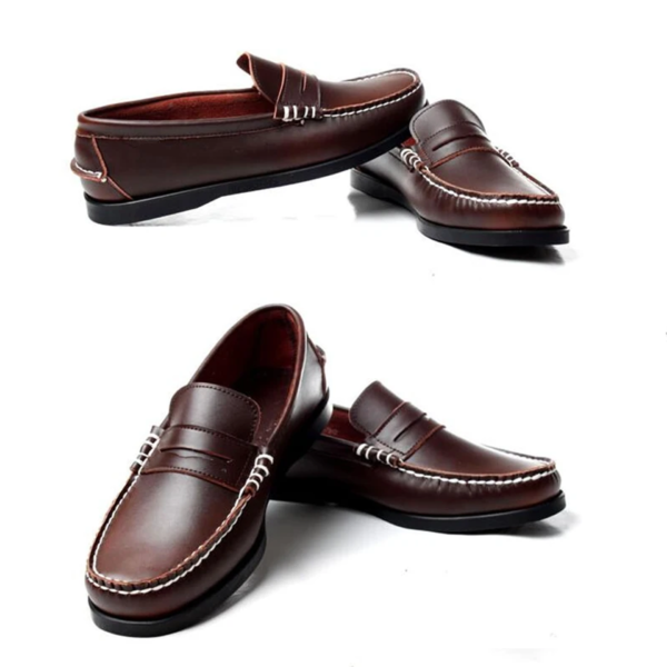 These dark brown boat shoes, crafted from genuine cow leather, feature a sleek, lace-free design that makes them both convenient and effortlessly stylish. The breathable pigskin lining ensures all-day comfort, while the durable rubber insole and outsole provide excellent grip and longevity.